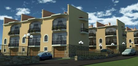 Проект поселка: 19 таунхаусов свободной планировки с придомовыми территориями, коммуникациями, домиком охраны. Стандартная планировка включает следующие помещения: холл, гостиная, кухня-столовая, спальни, санузлы на каждом этаже, техническое помещение, гараж или помещение под сауну или бассейн. Каждый таунхаус имеет отдельный вход, въезд в гараж, приусадебный земельный участок.
