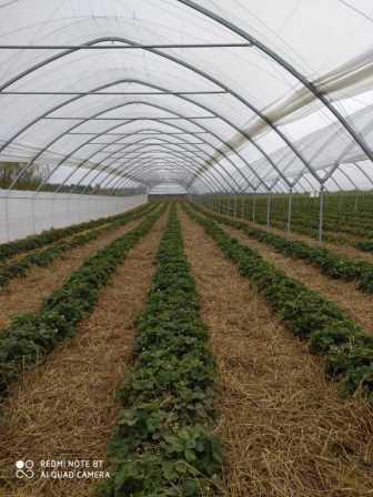 4. Полуниця висаджена у 2020 році. Сорт ремонтантний "Мурано". Висаджено 115500 шт. саджанців для одержання промислового врожаю на площі 3,5 га. Саджанці сертифіковані, Італія. У тому числі в тунелі площею 1,0 га посадки полуниці. Плодоносить начиння з травня до морозів. У тунелі плодоношення пролонговано.