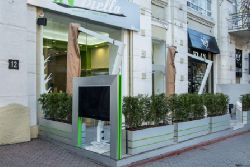 Работает летняя площадка площадью 28 м. кв. с разрешительными документами. Площадка выполнена в стиле Hi-tech. По обе стороны летней площадки установлены телевизоры 50 по диагонали (зашитые в противоударные боксы) используемые в целях рекламы и для обозначения акций. Напольное покрытие - палубная доска высокого качества. Два зонта 3x3 с встроенным освещением.
