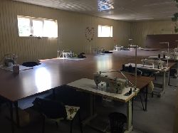 Производственно технологическое оборудование швейного цеха включает: двухтранспортные швейные машины для тяжёлых тканей - 18 шт, универсальная швейная машина - 8 шт; оверлок, сабельный раскройный нож, стол для раскроя, сделана разводка для пневмо- оборудования, в наличии мощный компрессор, расход воздуха 2,7 м.куб. в минуту.