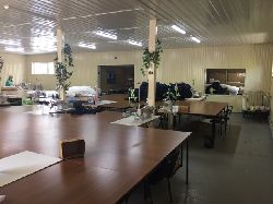 склад, швейный цех, раскройный цех, ОТК, раздевалка, столовая, санузел, офис, холодный склад, склад фурнитуры, котельную. В производственом помещении смонтирована система "тёплый пол".